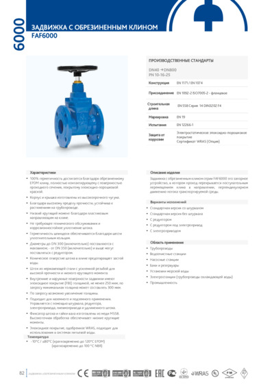 Технический лист. Задвижка с обрезиненным клином FAF 6000
