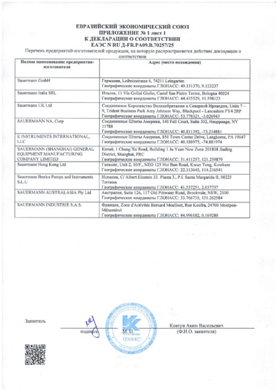 Декларация о соответствии. Насосы Sauermann (приложение)