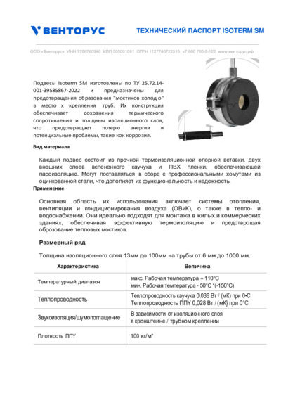 Техпаспорт подвесы ISOTERM SM