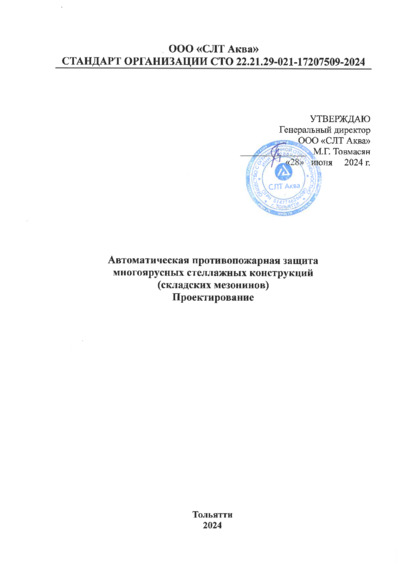 СТО 22.21.29-021-17207509-2024 Автоматическая противопожарная защита многоярусных стеллажных конструкций (мезонинов). Проектирование