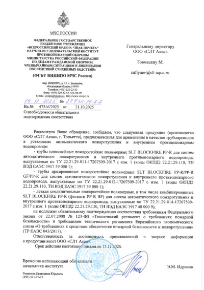 Отказное письмо №274 эп-14-2-7 от 21.10.2025 о необходимости обязательного подтверждения соответствия