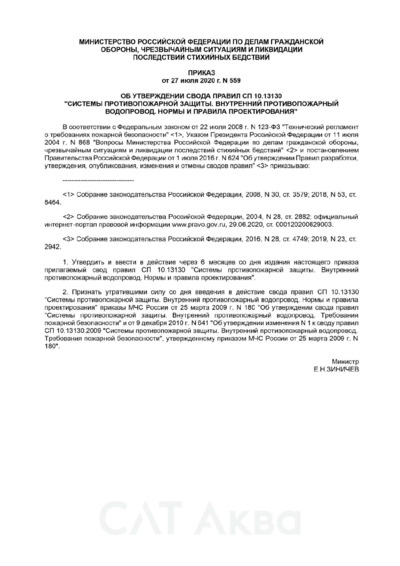 СП 10.13130.2020 Внутренний противопожарный водопровод. Нормы и правила проектирования (выдержки)