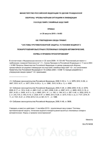 СП 241.1311500.2015. Установки водяного пожаротушения высотных стеллажных складов автоматические