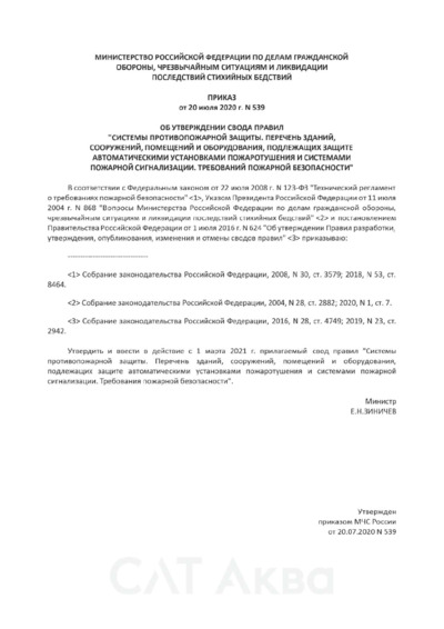 СП 486.1311500.2020 Перечень зданий, сооружений, помещений и оборудования, подлежащих защите автоматическими установками пожаротушения и системами пожарной сигнализации