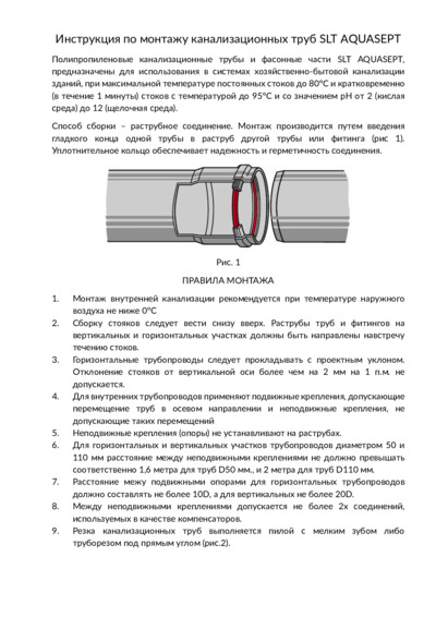 Инструкция по монтажу канализационных труб SLT AQUASEPT