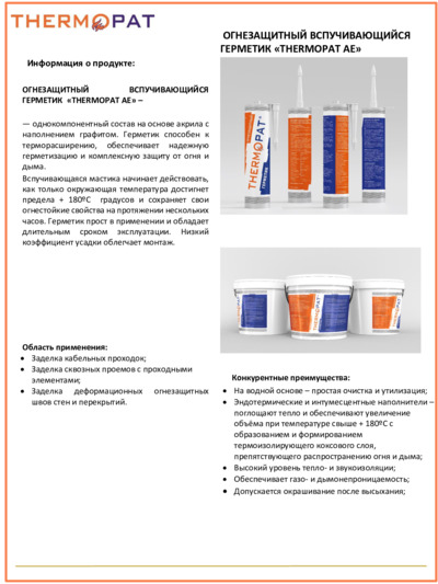 Технический лист. Герметик огнезащитный БИЗОН THERMOPAT AE