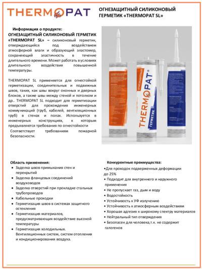Технический лист. Герметик огнезащитный БИЗОН THERMOPAT SL