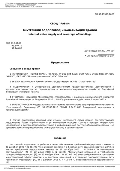 СП 30.13330.2020 Внутренний водопровод и канализация зданий