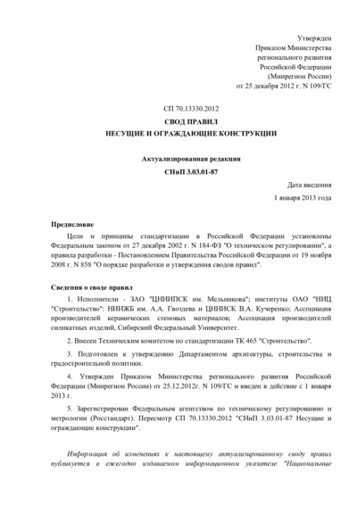 СП 70.13330.2012 Несущие и ограждающие конструкции