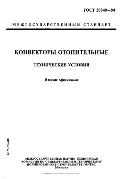 ГОСТ 20849-94 Конвекторы отопительные. Технические условия