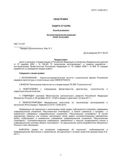 СП 51.13330.2011 Защита от шума. Актулизированная редакция СНиП 23-03-2003