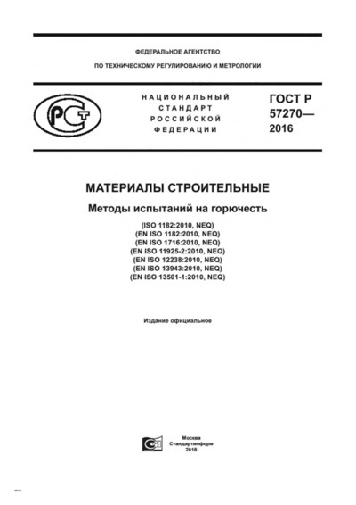 ГОСТ Р 57270-2016 Методы испытаний на горючесть