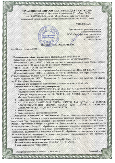 Экспертное заключение паста ИЗАГРИ