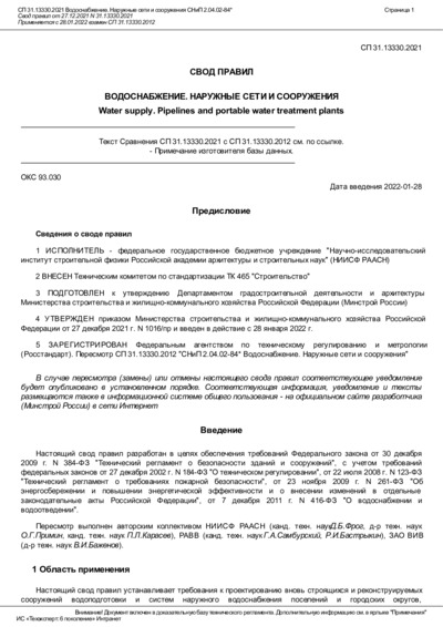 СП 31.13330 Водоснабжение. Наружные сети и сооружения