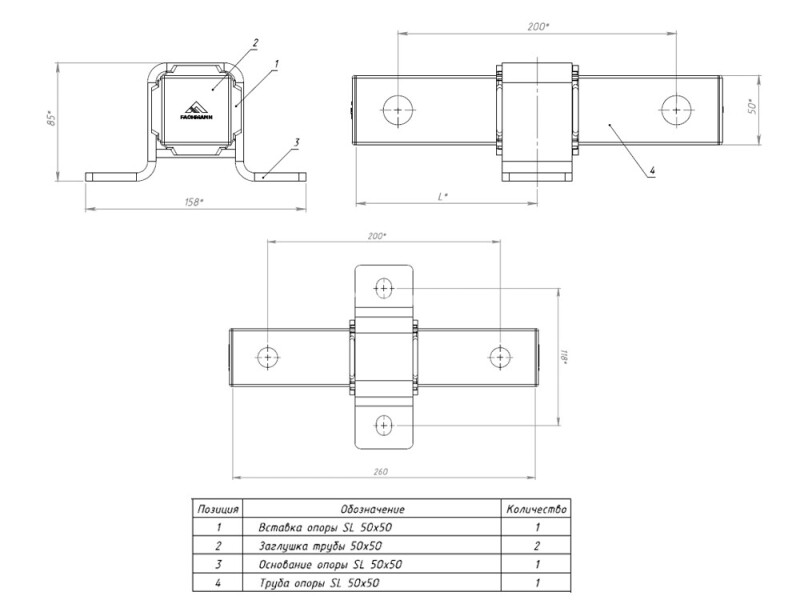 Чертеж: опора подвижная Fachmann SL 50x50