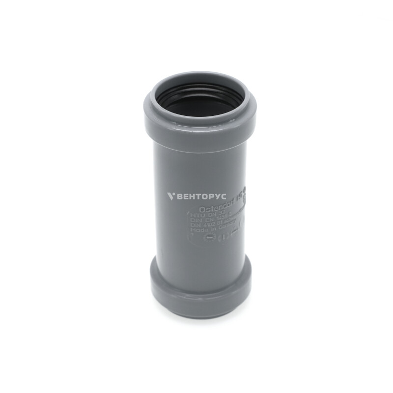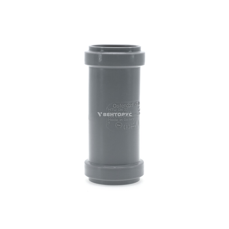 Муфта двухраструбная для внутренней канализации Ostendorf HTMM диаметром 32 мм. Предназначена для соединения канализационных труб, когда необходимо соединить две трубы не имеющих раструб или в случае их ремонта.