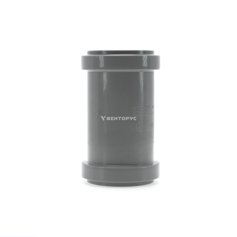 Муфта двухраструбная для внутренней канализации Ostendorf HTMM диаметром 50 мм. Предназначена для соединения канализационных труб, когда необходимо соединить две трубы не имеющих раструб или в случае их ремонта.