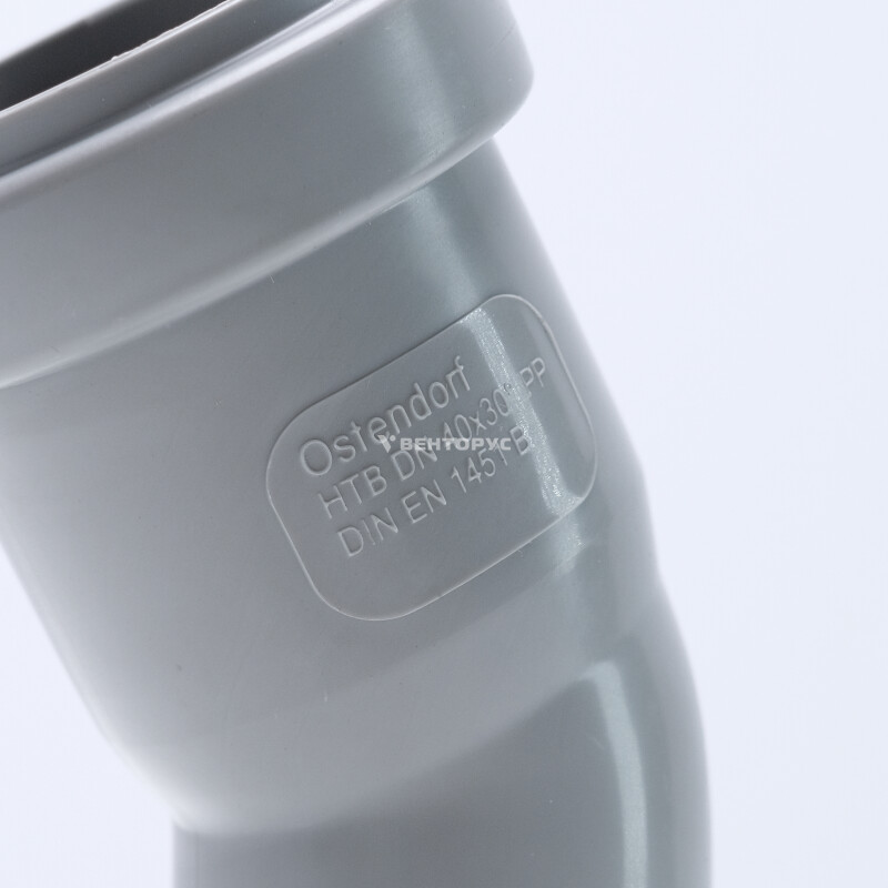 Отвод для внутренней канализации Ostendorf HTB изготовленный под углом 30° диаметром 40 мм. Предназначен для организации поворота элементов системы трубопроводов во внутренней канализации.