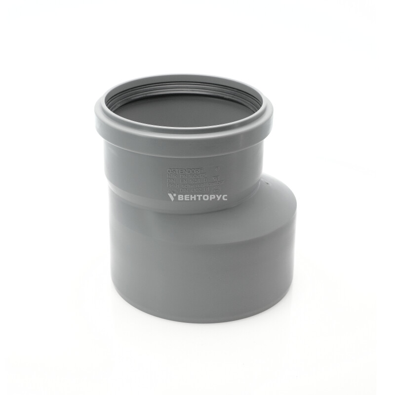 Переход эксцентрический (редукция) для внутренней канализации Ostendorf HTR диаметром 160x125 мм. Предназначен для перехода труб канализационных с большего диаметра на меньший в системах транспортирующих хозяйственно-фекальные стоки внутри жилых, административных, производственных зданий.