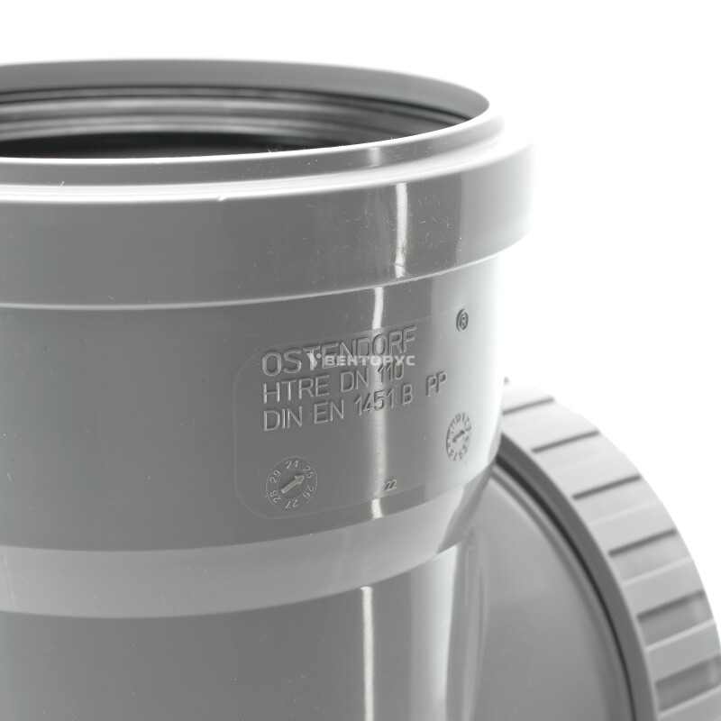 Ревизия для внутренней канализации Ostendorf HTRE диаметром 110 мм. Данная ревизия используется в системах внутренней хозяйственно-бытовой канализации для инспекции канализационных трубопроводов. Благодаря наличию откручивающейся крышки, имеется легкий и простой доступ во внутрь канализационной системы для проверки засоров или ее прочистки.