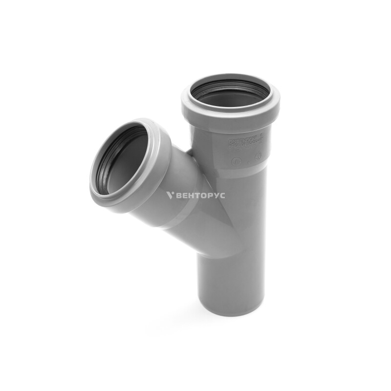 Тройник для внутренней канализации Ostendorf HTEA изготовленный под углом 45° диаметром 50x50 мм. Предназначен для монтажа разветвления трубопроводов в системах канализации внутри жилых, административных, производственных зданий, транспортирующих хозяйственно-фекальные стоки.