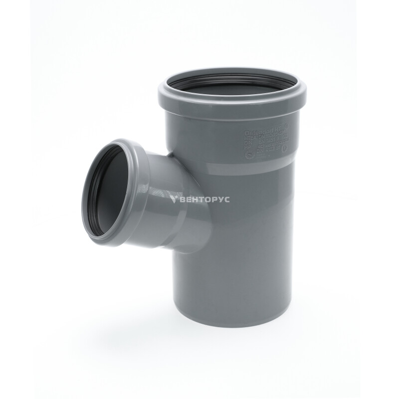 Тройник для внутренней канализации Ostendorf HTEA изготовленный под углом 67° диаметром 110x75 мм. Предназначен для монтажа разветвления трубопроводов в системах канализации внутри жилых, административных, производственных зданий, транспортирующих хозяйственно-фекальные стоки.