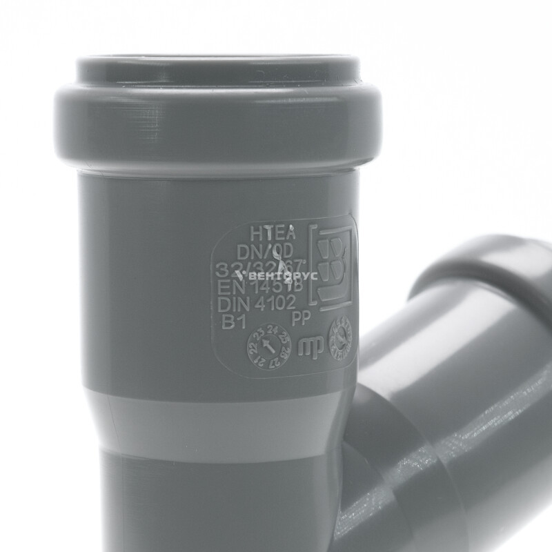 Тройник для внутренней канализации Ostendorf HTEA изготовленный под углом 67° диаметром 32x32 мм. Предназначен для монтажа разветвления трубопроводов в системах канализации внутри жилых, административных, производственных зданий, транспортирующих хозяйственно-фекальные стоки.