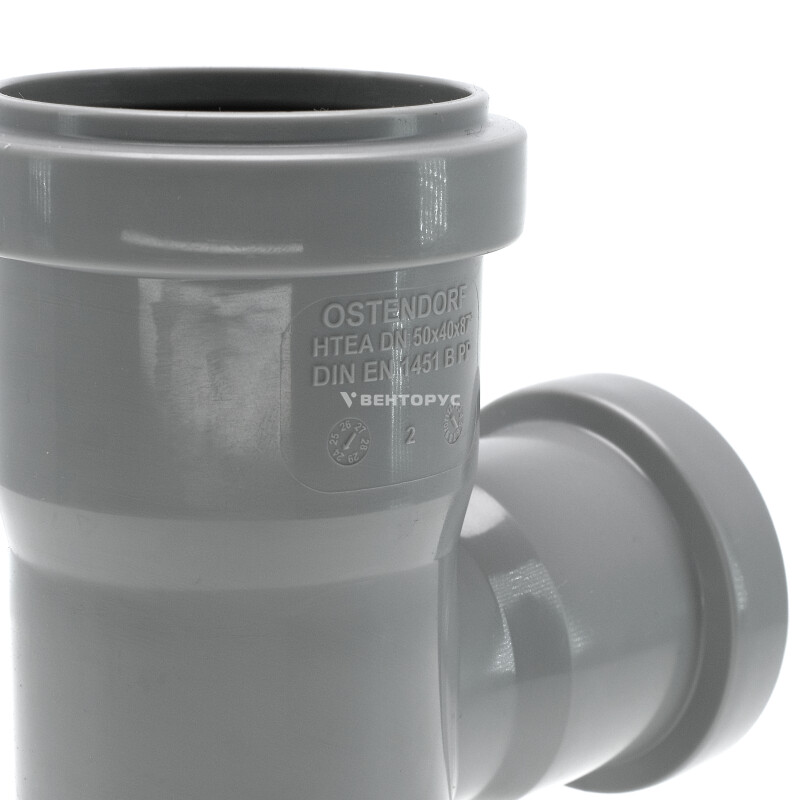 Тройник для внутренней канализации Ostendorf HTEA изготовленный под углом 87° диаметром 50x40 мм. Предназначен для монтажа разветвления трубопроводов в системах канализации внутри жилых, административных, производственных зданий, транспортирующих хозяйственно-фекальные стоки.