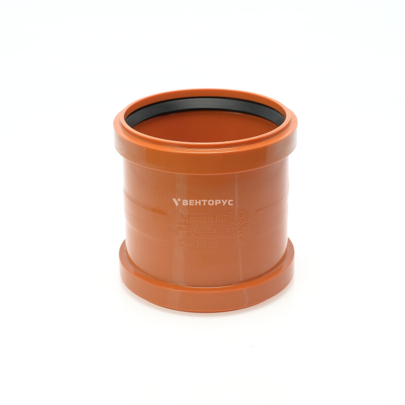 Муфта двухраструбная для наружной канализации Ostendorf KGMM диаметром 125 мм. Предназначена для соединения канализационных труб, когда необходимо соединить две трубы не имеющих раструб или в случае их ремонта.