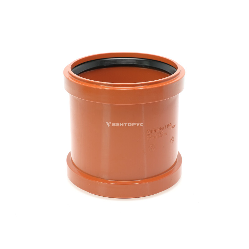 Муфта ремонтная (надвижная) для наружной канализации Ostendorf KGU диаметром 110 мм. Предназначена для соединения труб в местах, где по ряду причин, используются трубы без раструба. Это может быть в местах разрыва трубопровода из-за неосторожного использования инженерной техники, или из-за смещения пластов земной коры, приведших к разрушению целостности существующего трубопровода безнапорной канализации где необходимо вырезать часть поврежденной трубы и вставить кусок ремонтной трубы, которая и будет крепится при помощью муфт.
