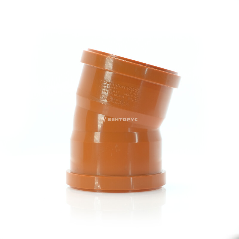 Отвод двухраструбный для наружней канализации Ostendorf KGBD 2М изготовленный под углом 15° диаметром 110 мм. Предназначен для организации поворота элементов системы трубопроводов наружной канализации под углом 15°. Цвет Оранжево-коричневый RAL 8023.