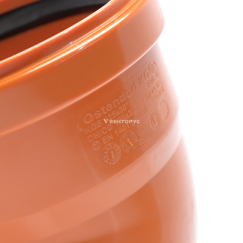 Отвод для наружной канализации Ostendorf KGB диаметром 125 мм, изготовленный под углом 30°. Предназначен для организации поворота элементов системы трубопроводов наружной канализации под углом 30°. Цвет Оранжево-коричневый RAL 8023.