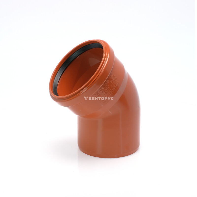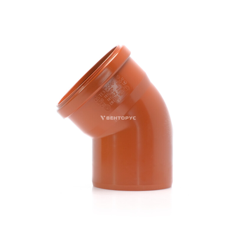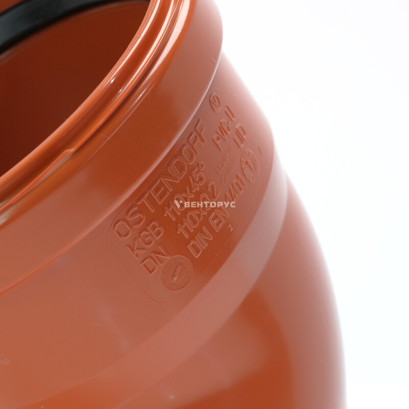 Отвод для наружной канализации Ostendorf KGB диаметром 110 мм, изготовленный под углом 45°. Предназначен для организации поворота элементов системы трубопроводов наружной канализации под углом 45°. Цвет Оранжево-коричневый RAL 8023.