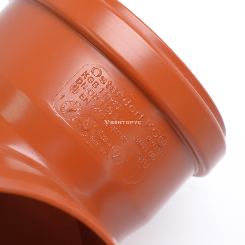 Отвод для наружной канализации Ostendorf KGB диаметром 110 мм, изготовленный под углом 87°. Предназначен для организации поворота элементов системы трубопроводов наружной канализации под углом 87°. Цвет Оранжево-коричневый RAL 8023.