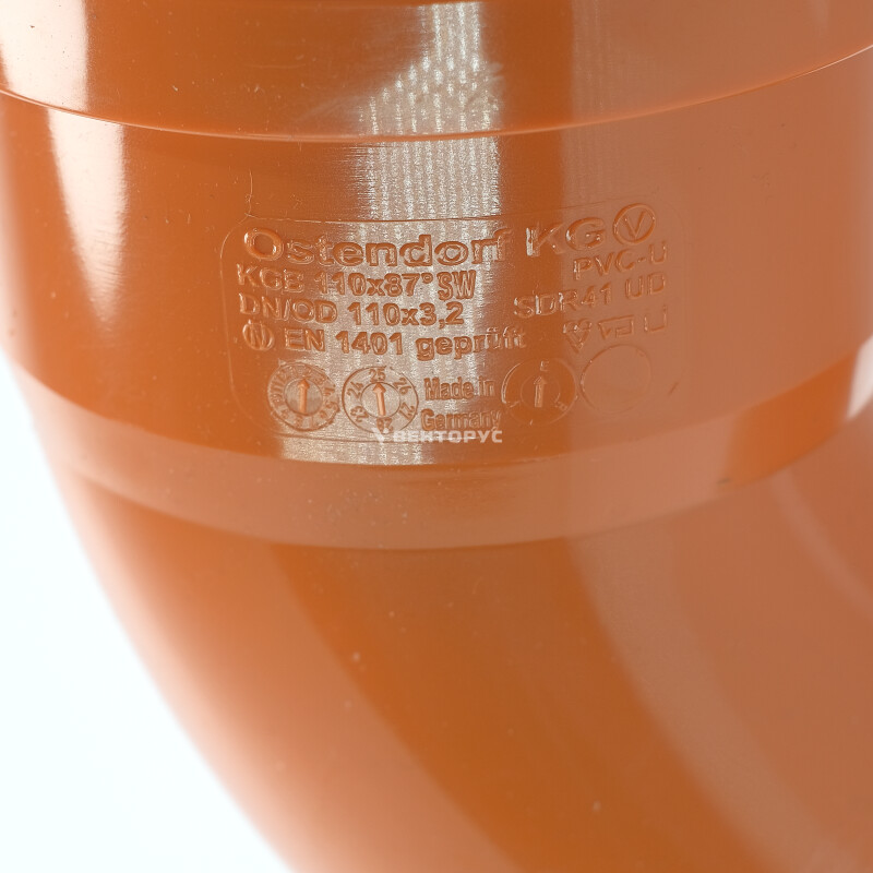 Отвод радиальный для наружной канализации Ostendorf KGB 1М SW диаметром 110 мм, изготовленный под углом 87°. Предназначен для организации поворота элементов системы трубопроводов наружной канализации под углом 87°. Цвет Оранжево-коричневый RAL 8023.