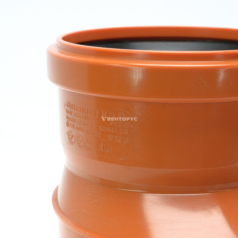 Переход эксцентрический для наружной канализации Ostendorf KGR диаметром 160x125 мм. Предназначен для перехода с одного диаметра трубы на другой при строительстве наружных безнапорных канализационных сетей, с использованием труб.