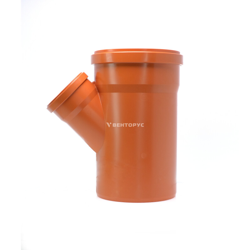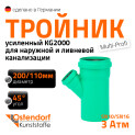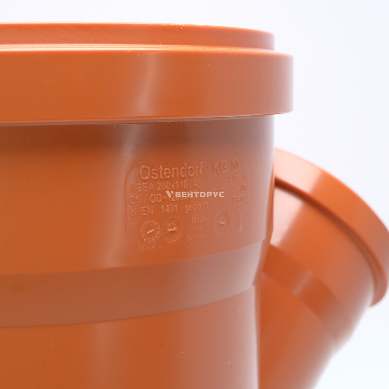 Тройник для наружной канализации Ostendorf KGEA диаметром 200x110x200, изготовленный под углом 45°. Предназначен для монтажа разветвления трубопроводов в системах канализации внутри жилых, административных, производственных зданий, транспортирующих хозяйственно-фекальные стоки.