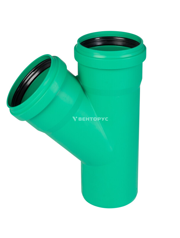 Тройник для усиленной наружной канализации Ostendorf KG2000EA диаметром 110х110x110 мм изготовленный под углом 45°. Предназначен для монтажа разветвления трубопроводов в системах канализации внутри жилых, административных, производственных зданий, транспортирующих хозяйственно-фекальные стоки. Цвет зеленый RAL 6017.