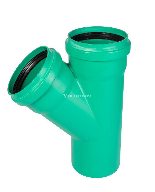 Тройник для усиленной наружной канализации Ostendorf KG2000EA диаметром 200х200x200 мм изготовленный под углом 45°. Предназначен для монтажа разветвления трубопроводов в системах канализации внутри жилых, административных, производственных зданий, транспортирующих хозяйственно-фекальные стоки. Цвет зеленый RAL 6017.