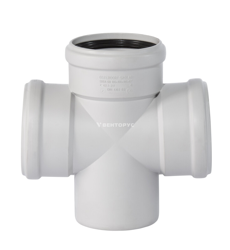 Крестовина для внутренней бесшумной канализации Ostendorf SKDA изготовленная под углом 87° диаметром 110x110x110 мм. Предназначена для соединения четырех труб в одной точке, образуя крестообразное соединение. Цвет белый.