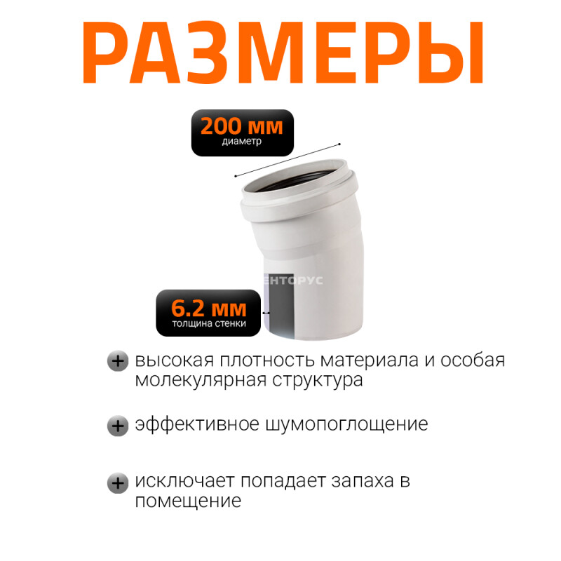 Канализационный отвод бесшумной системы Ostendorf Skolan Safe SKB диаметром 200 мм изготовленный под углом 15°. Предназначен для организации поворота элементов системы трубопроводов во внутренней канализации.