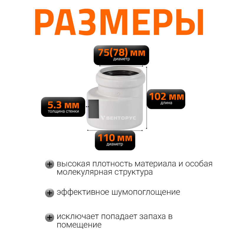 | Диаметр номинальный DN | 110x75 |