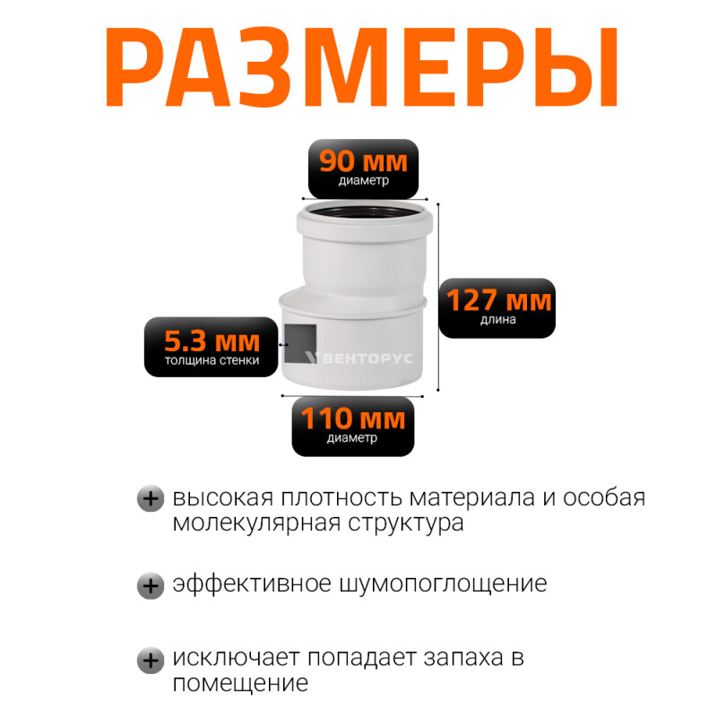 Переход эксцентрический для внутренней бесшумной канализации Ostendorf Skolan SKR диаметром 110x90 мм. Предназначен для перехода с одного диаметра трубы на другой при строительстве наружных безнапорных канализационных сетей, с использованием труб.