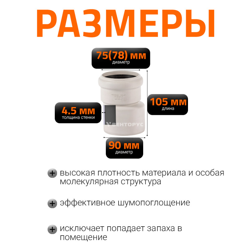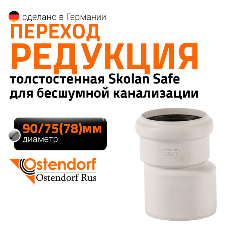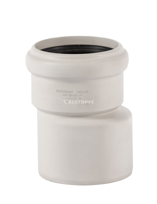 Переход эксцентрический для внутренней бесшумной канализации Ostendorf Skolan SKR диаметром 90x75 мм. Предназначен для перехода с одного диаметра трубы на другой при строительстве наружных безнапорных канализационных сетей, с использованием труб.