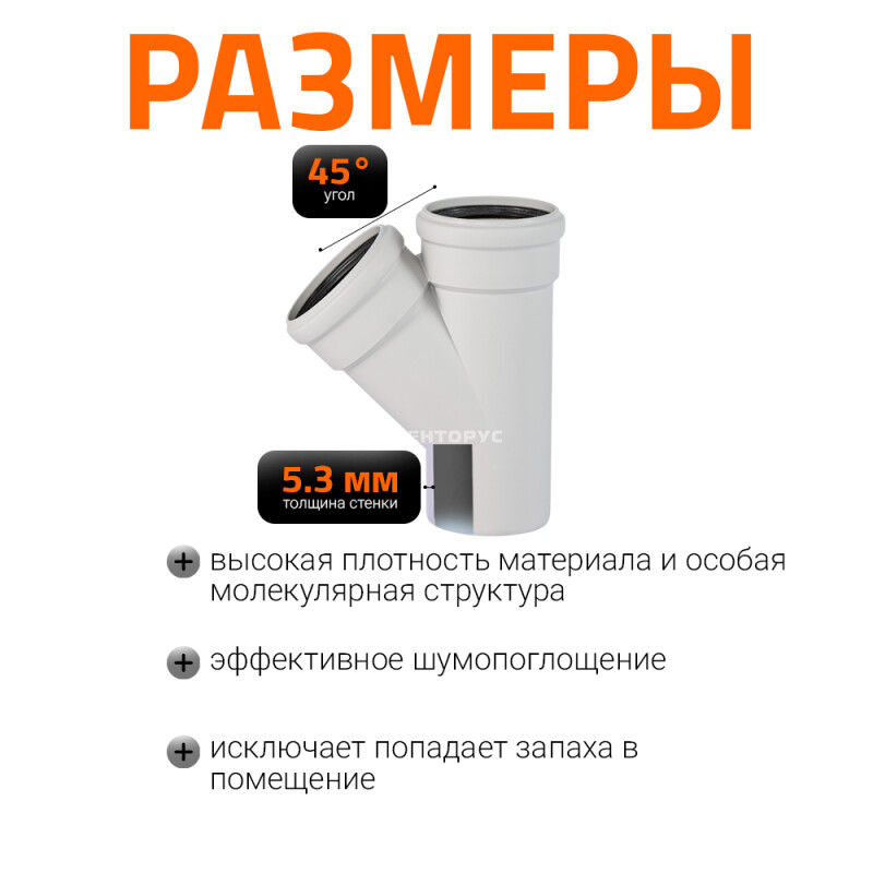 Тройник для внутренней бесшумной канализации Ostendorf Skolan Safe SKEA изготовленный под углом 45° диаметром 100x100 мм. Предназначен для монтажа разветвления трубопроводов в системах канализации внутри жилых, административных, производственных зданий, транспортирующих хозяйственно-фекальные стоки.