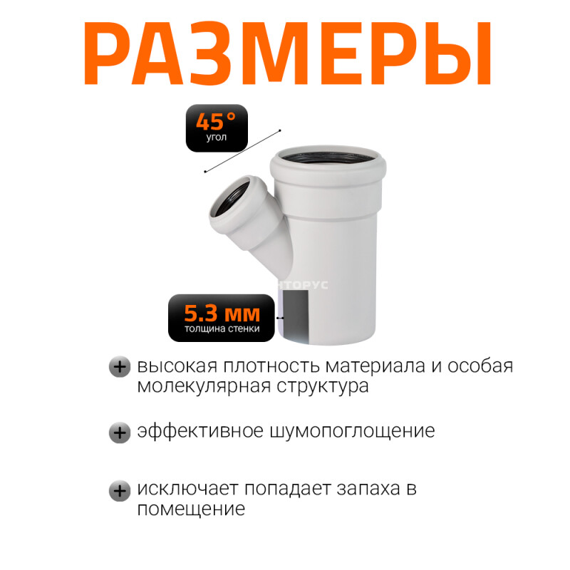 Тройник для внутренней бесшумной канализации Ostendorf Skolan Safe SKEA изготовленный под углом 45° диаметром 110x50 мм. Предназначен для монтажа разветвления трубопроводов в системах канализации внутри жилых, административных, производственных зданий, транспортирующих хозяйственно-фекальные стоки.