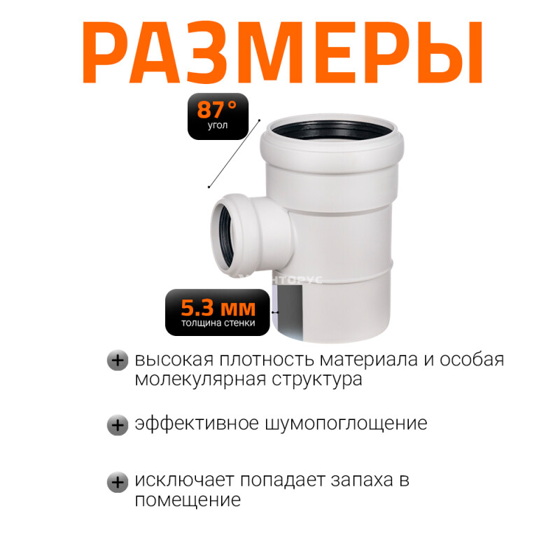 Тройник для внутренней бесшумной канализации Ostendorf Skolan Safe SKEA изготовленный под углом 87° диаметром 110x50 мм. Предназначен для монтажа разветвления трубопроводов в системах канализации внутри жилых, административных, производственных зданий, транспортирующих хозяйственно-фекальные стоки.