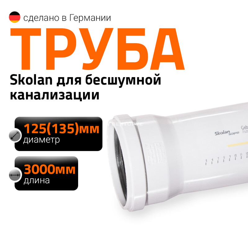 Труба для внутренней бесшумной канализации Ostendorf Skolan Safe номинальным диаметром 125 мм, толщиной стенки 5,3 мм и длиной 3000 мм. Предназначена для внутренней разводки в системах хозяйственно-бытовой канализация внутри жилых, административных и промышленных зданиях, а также для систем внутренних водостоков. Толстые стенки труб Skolan Safe обеспечивают тишину и комфорт в помещении. Благодаря этому ее разрешено применять во всех отраслях высотного строительства. Кольцевая жесткость SN16. Степень звукоизоляции III - 17 Дб. Химическая стойкость для агрессивных сред в диапазоне от pH 2 до pH 12. Выдерживаемое давление системы 2 Атм. Выдерживаемая температура стоков 90 °C. Широкий ассортимент шумопоглощающих канализационных труб Ostendorf Skolan Safe по доступным ценам, в наличии и под заказ.