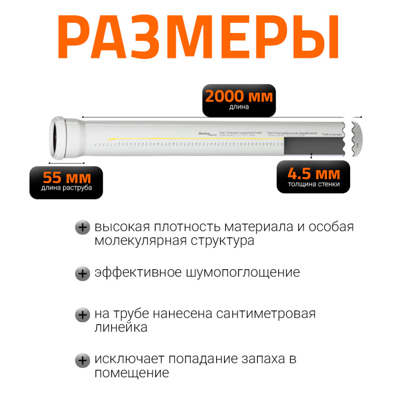 Труба для внутренней бесшумной канализации Ostendorf Skolan Safe номинальным диаметром 90 мм, толщиной стенки 4,5 мм и длиной 2000 мм. Предназначена для внутренней разводки в системах хозяйственно-бытовой канализация внутри жилых, административных и промышленных зданиях, а также для систем внутренних водостоков. Толстые стенки труб Skolan Safe обеспечивают тишину и комфорт в помещении. Благодаря этому ее разрешено применять во всех отраслях высотного строительства. Кольцевая жесткость SN16. Степень звукоизоляции III - 17 Дб. Химическая стойкость для агрессивных сред в диапазоне от pH 2 до pH 12. Выдерживаемое давление системы 2 Атм. Выдерживаемая температура стоков 90 °C. Широкий ассортимент шумопоглощающих канализационных труб Ostendorf Skolan Safe по доступным ценам, в наличии и под заказ.
