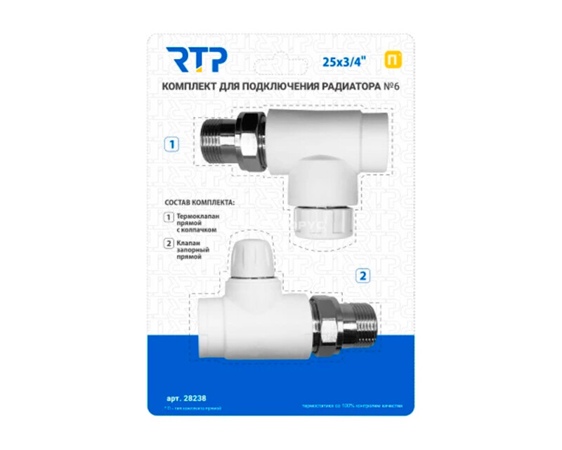 RTP Комплект №6 (Термостатический клапан прямой с колпачком, клапан запорный прямой) PP-R 25х3/4"